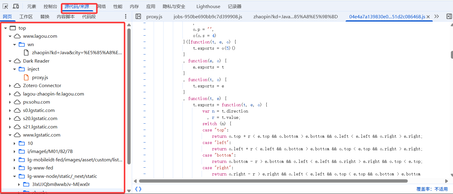 - 源代码/来源界面,存放了js代码、图片、css、html等静态资源文件