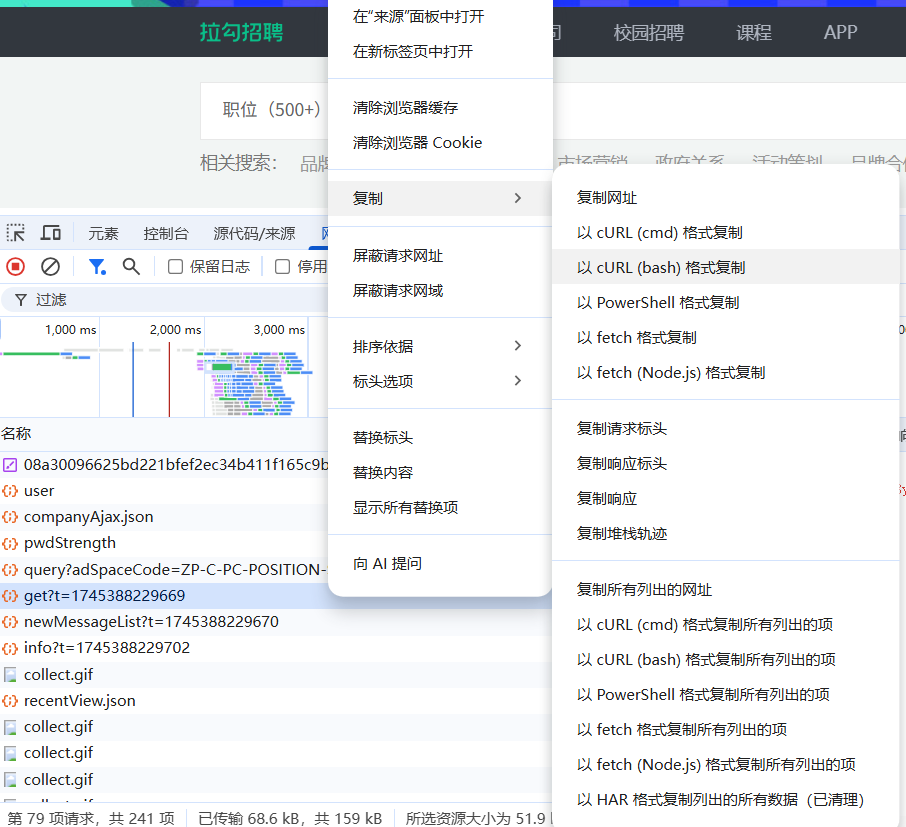 复制接口的crul代码(bash格式)
