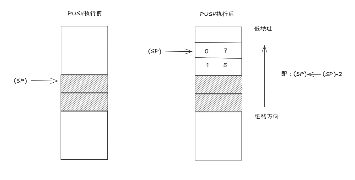 PUSH SRC:先移动指针,后压入数据(所以压完数据后,指针是指向着该数据的)